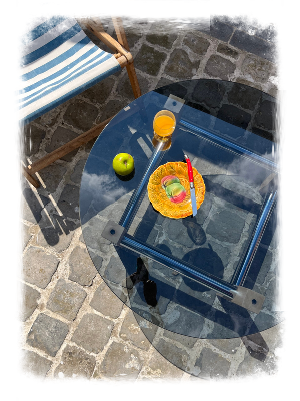 Le verre du plateau est bleu fumé & lourd