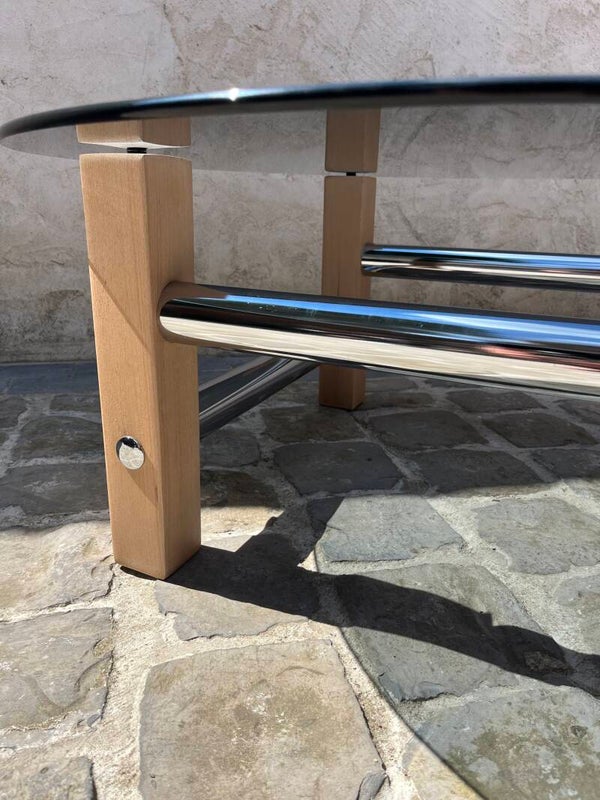 Table des années 70 en superbe état dans le style Bauhaus sans signature. Francaise ou italien je dirais…